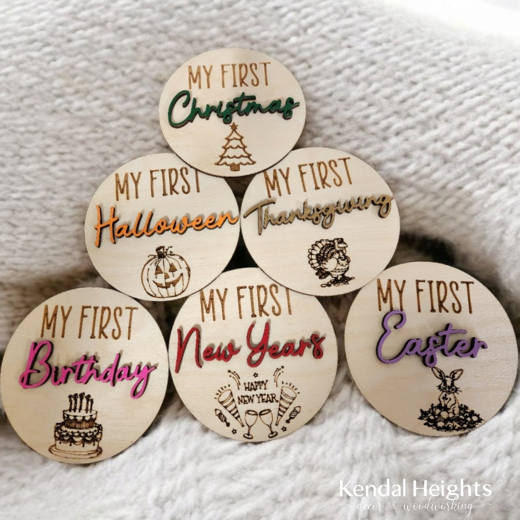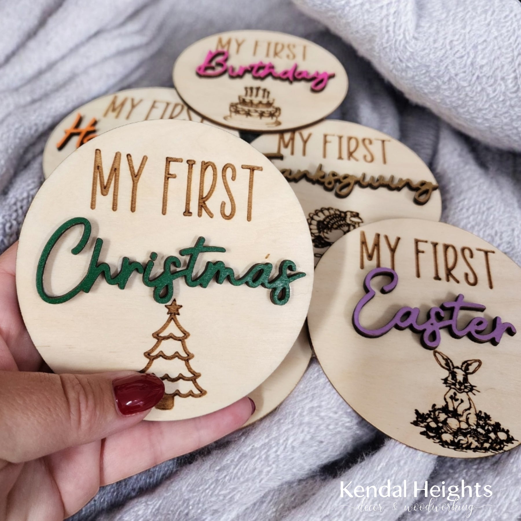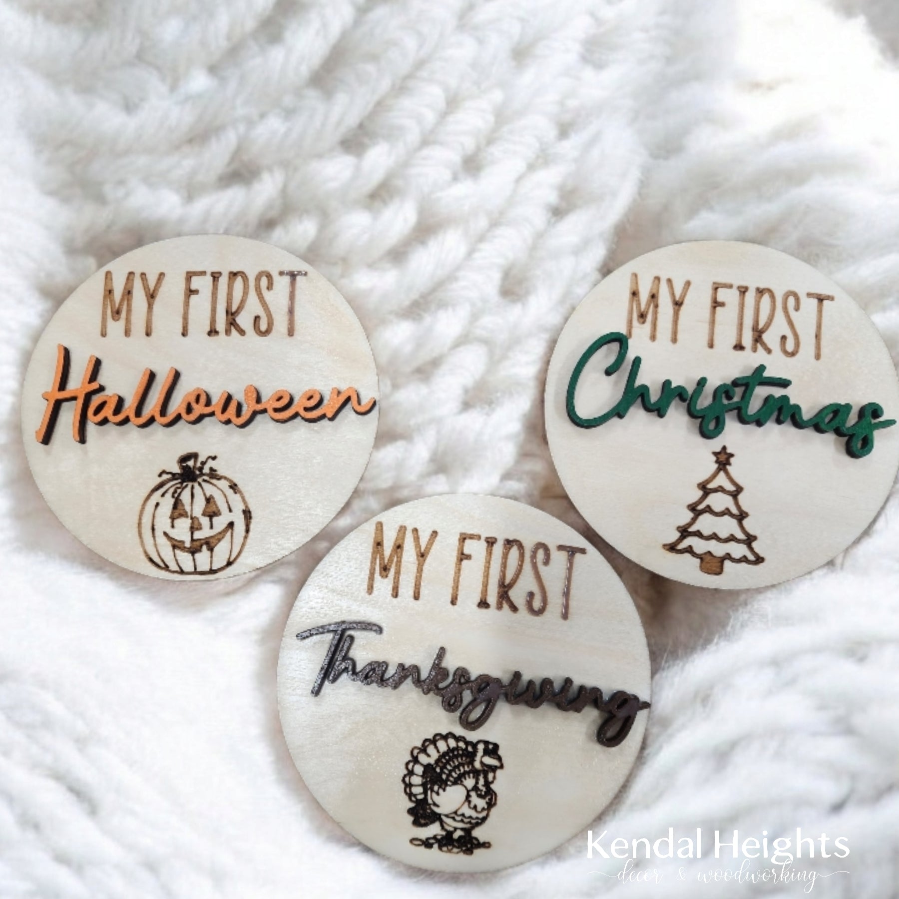 Celebrate your new baby with super cute milestone discs on the holidays.