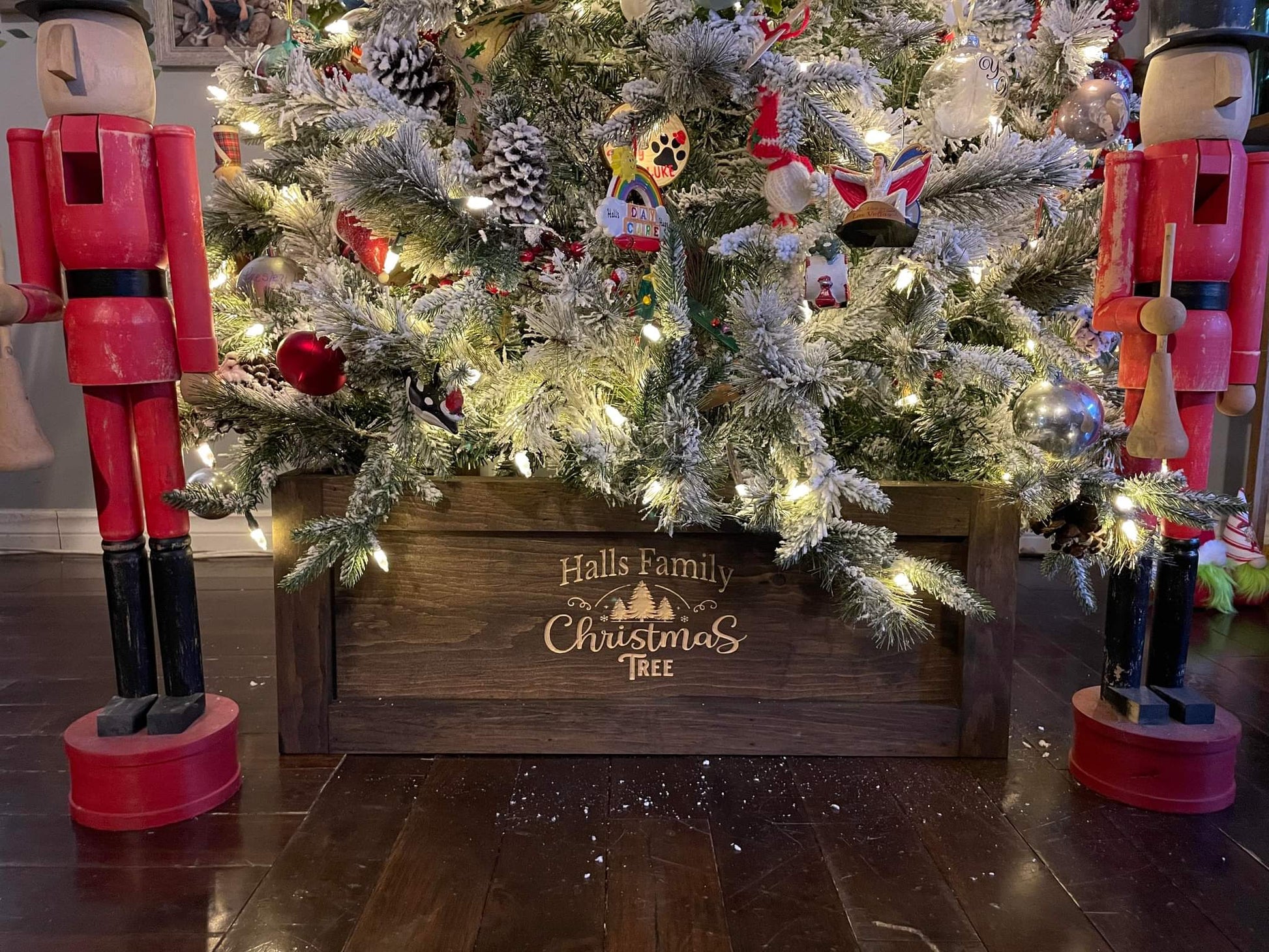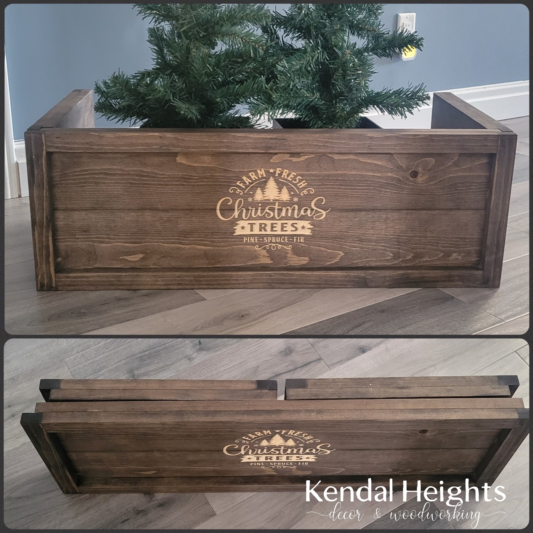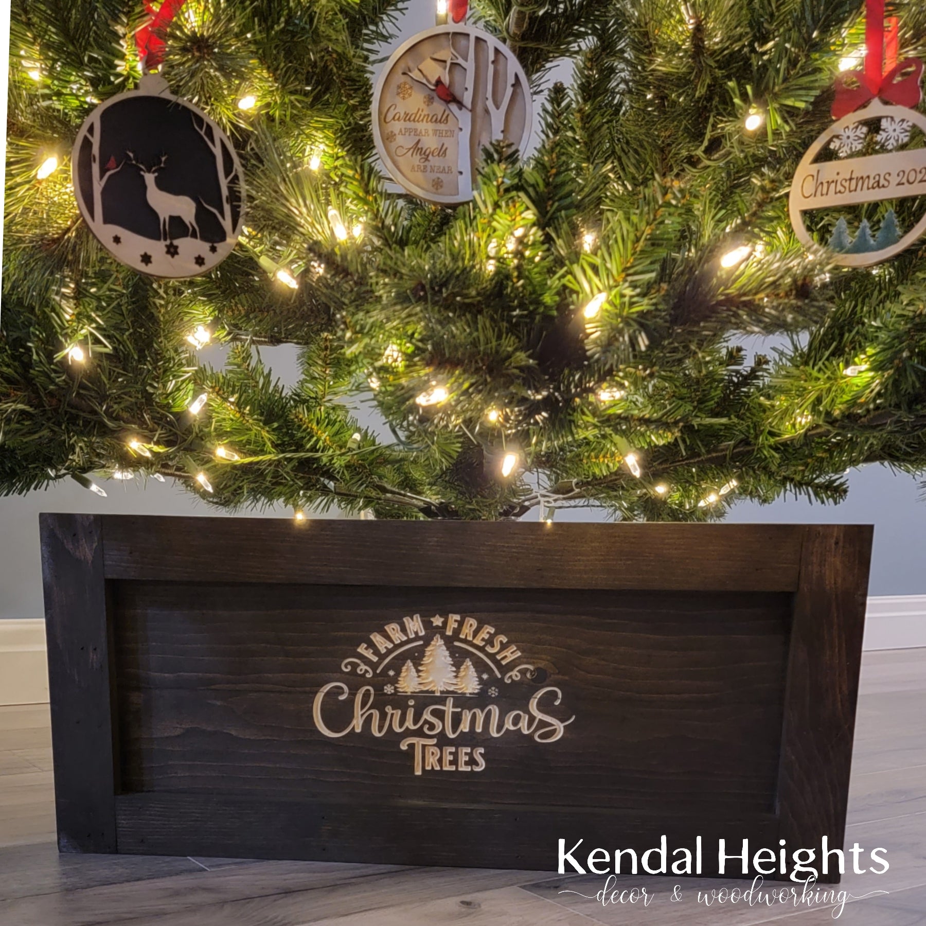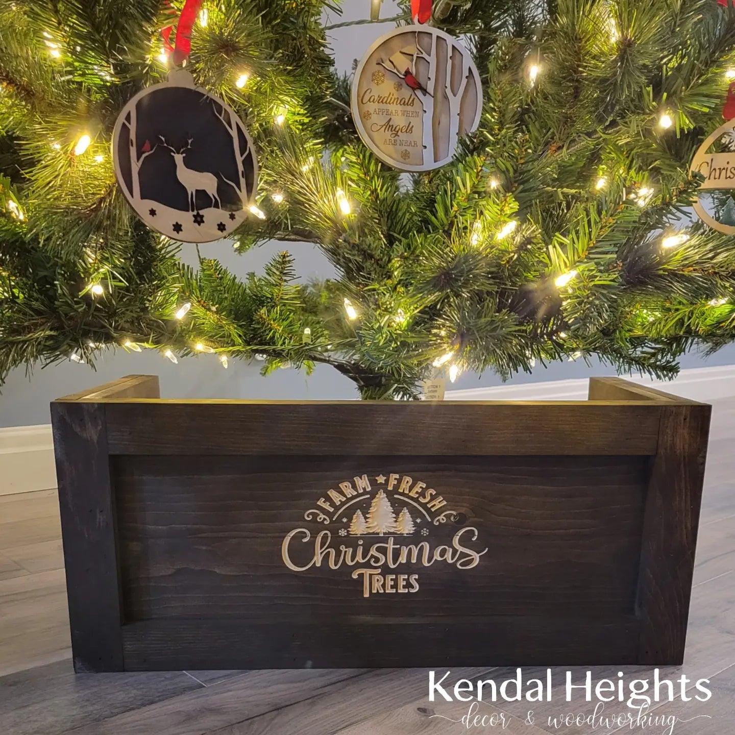Measuring 25" wide x 12" deep to fit around the base of your tree.