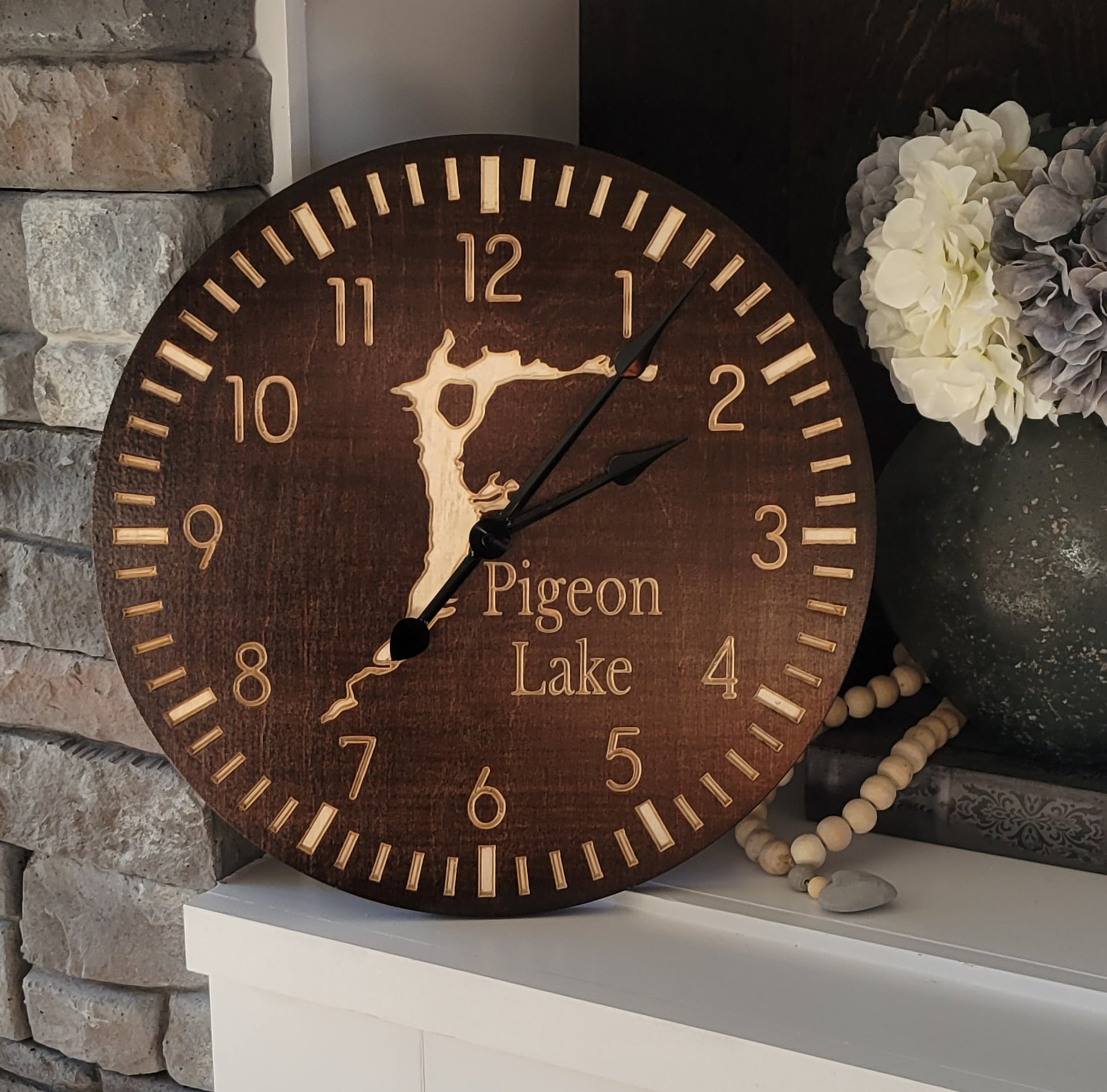 Custom unique clock can be done for any lake, river or body of water. Beautiful piece to add to the cottage or lake house.