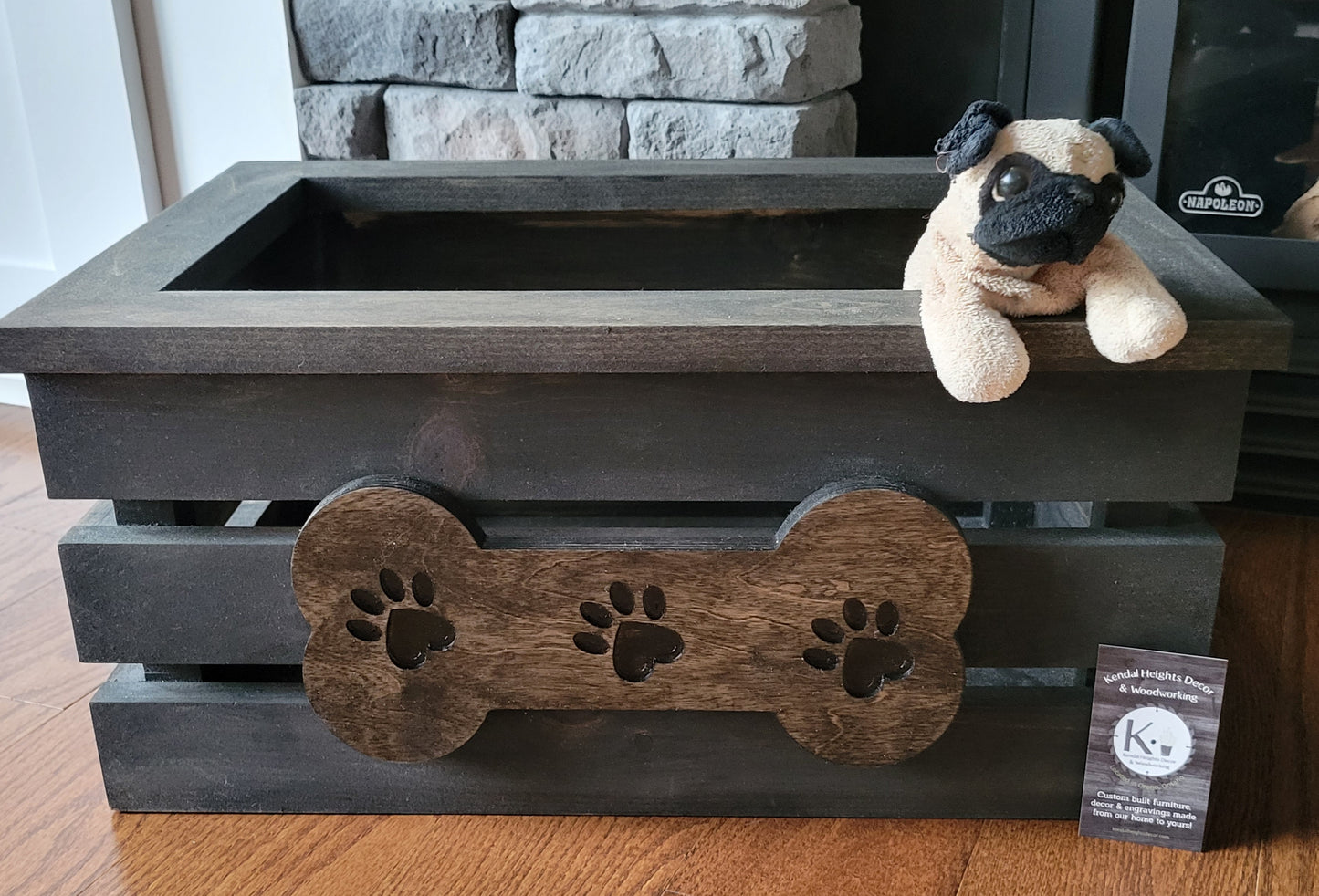 Choose your engraving and give your pet their own custom toy bin