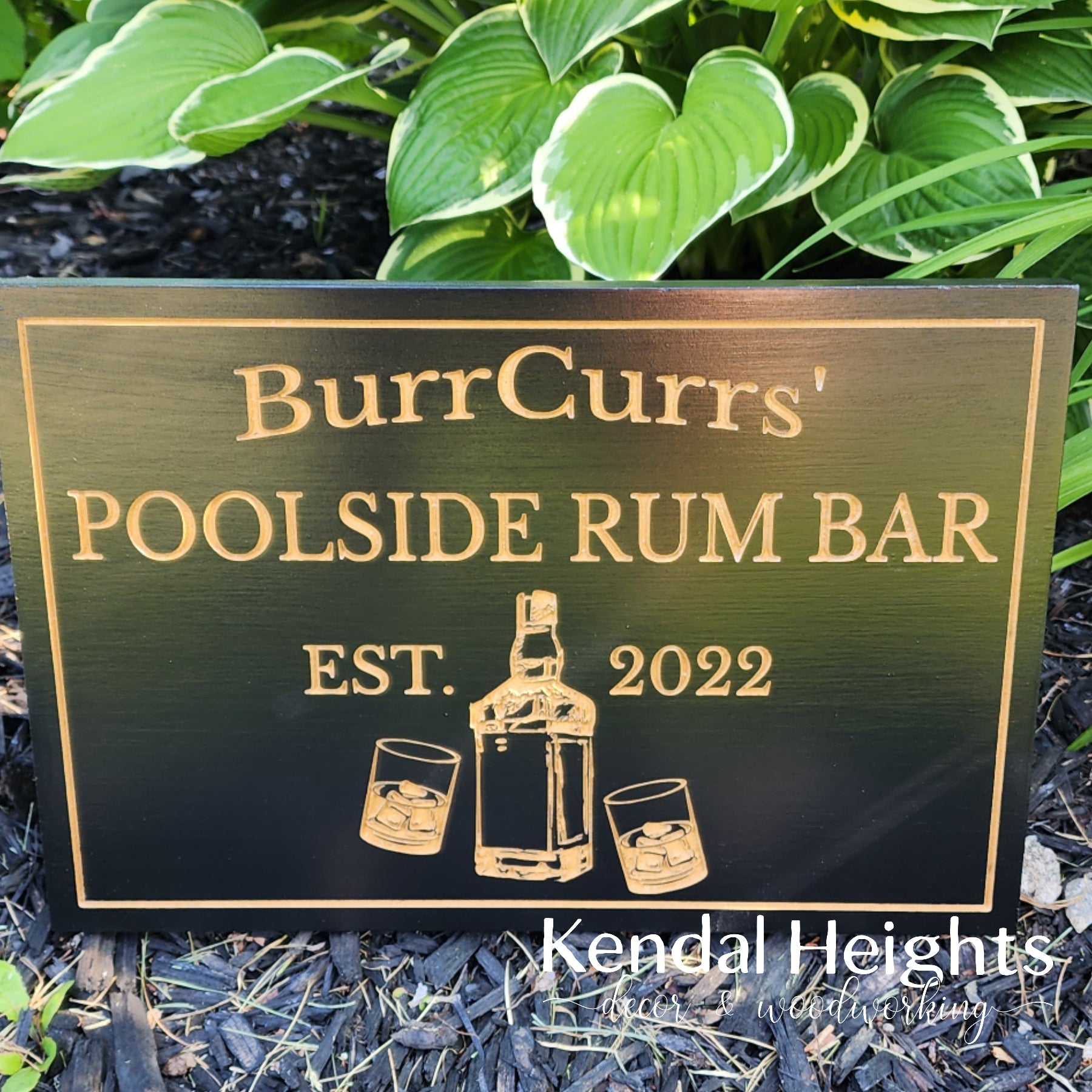 Give a custom engraved poolside bar sign for that finishing touch outside.