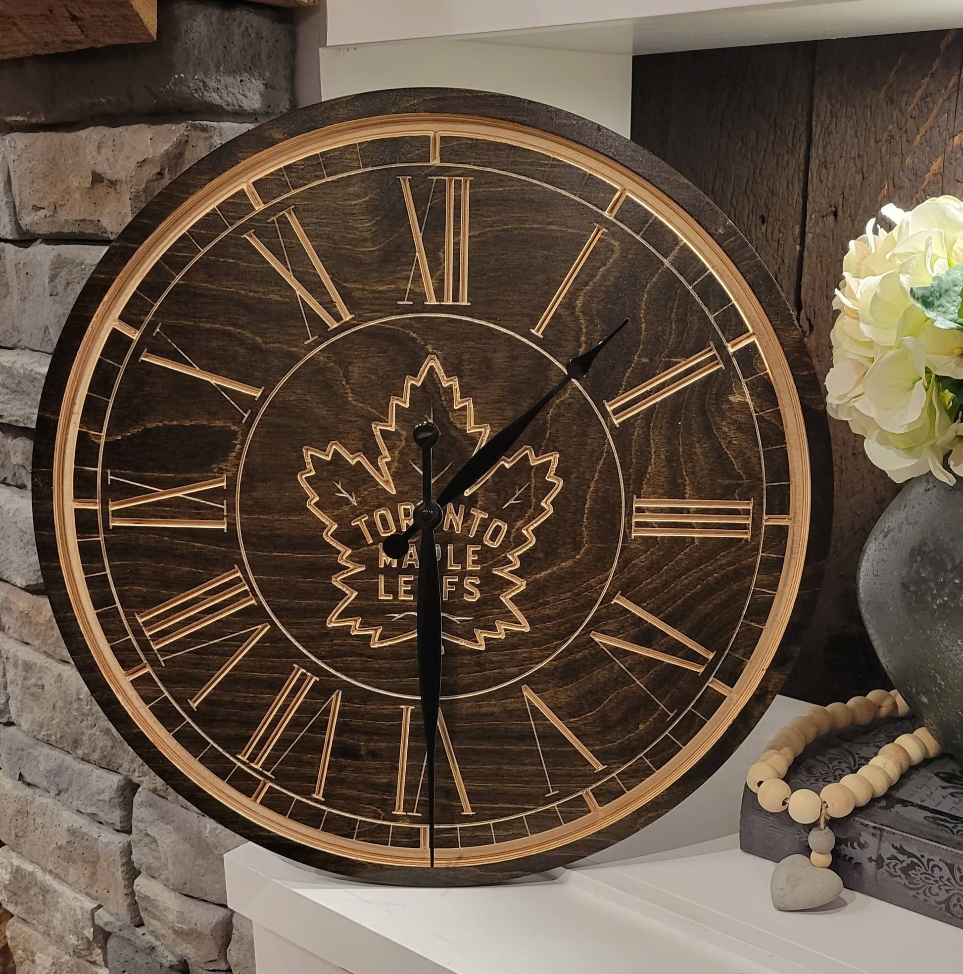 Stay in the present with a custom engraved wood clock from Kendal Heights Decor and Woodworking! You will receive a message from us with a mock-up of your custom design so you can approve it prior to engraving.