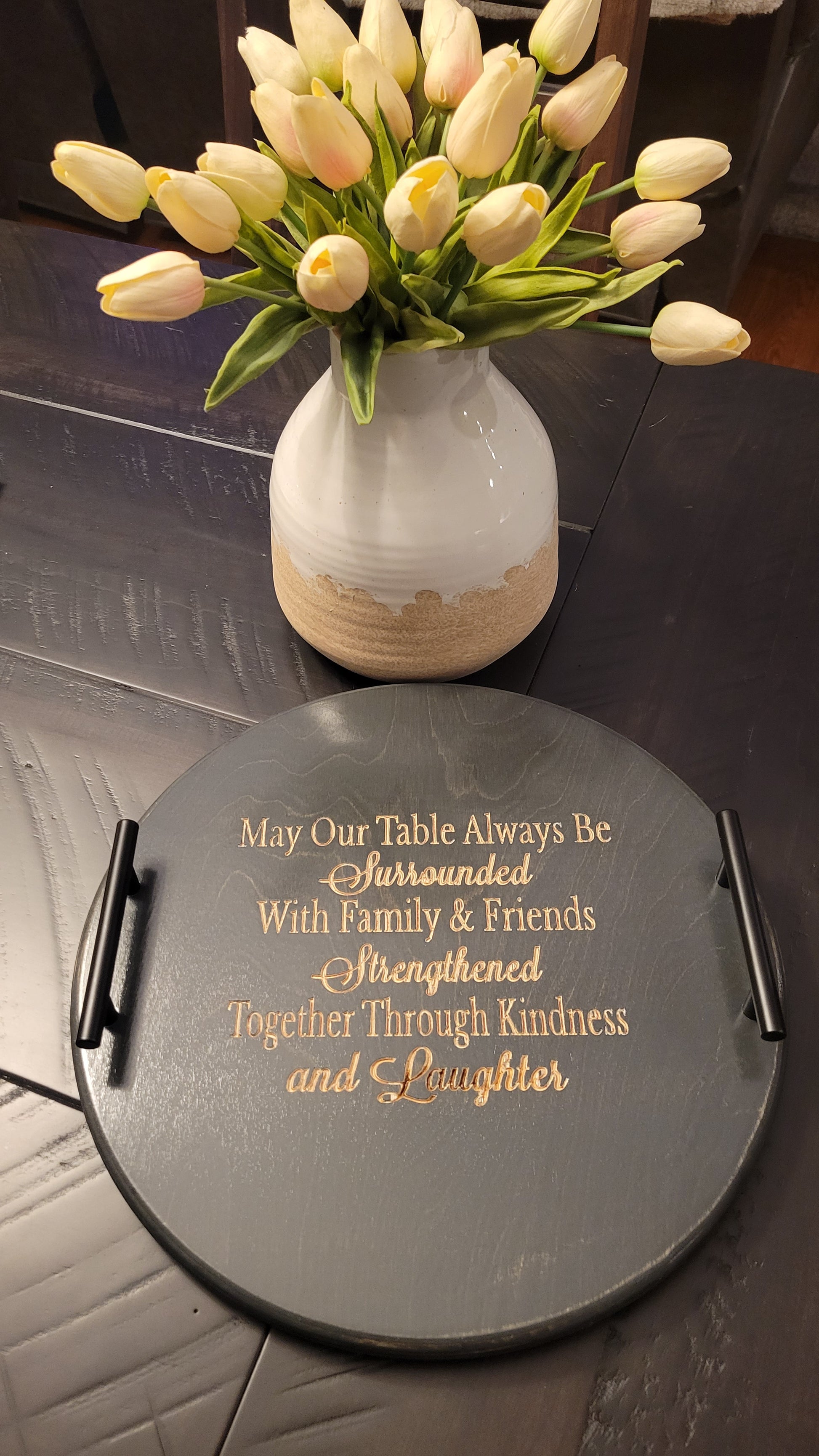 Be a hostess in style with a custom engraved lazy susan from Kendal Heights Decor & Woodworking.