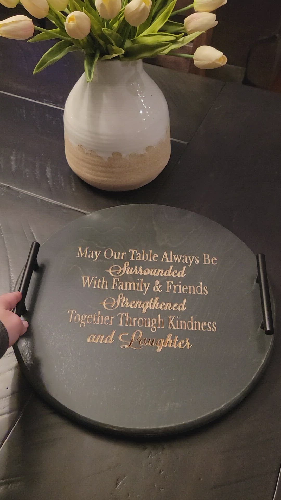 Please note this tray comes in 15" round, but we can customize sizing! Message us for a mock-up and quote for sizing other than what's listed. (@kendalheightsdecor.com)