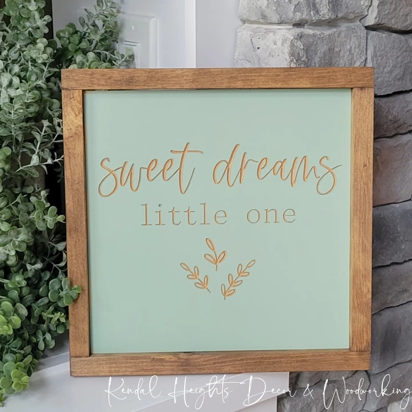 Please note this Sign comes in 10x10"  in Brook Green framed in Provincial stain, but we can customize sizing! Message us for a mock-up and quote for sizing other than what's listed.