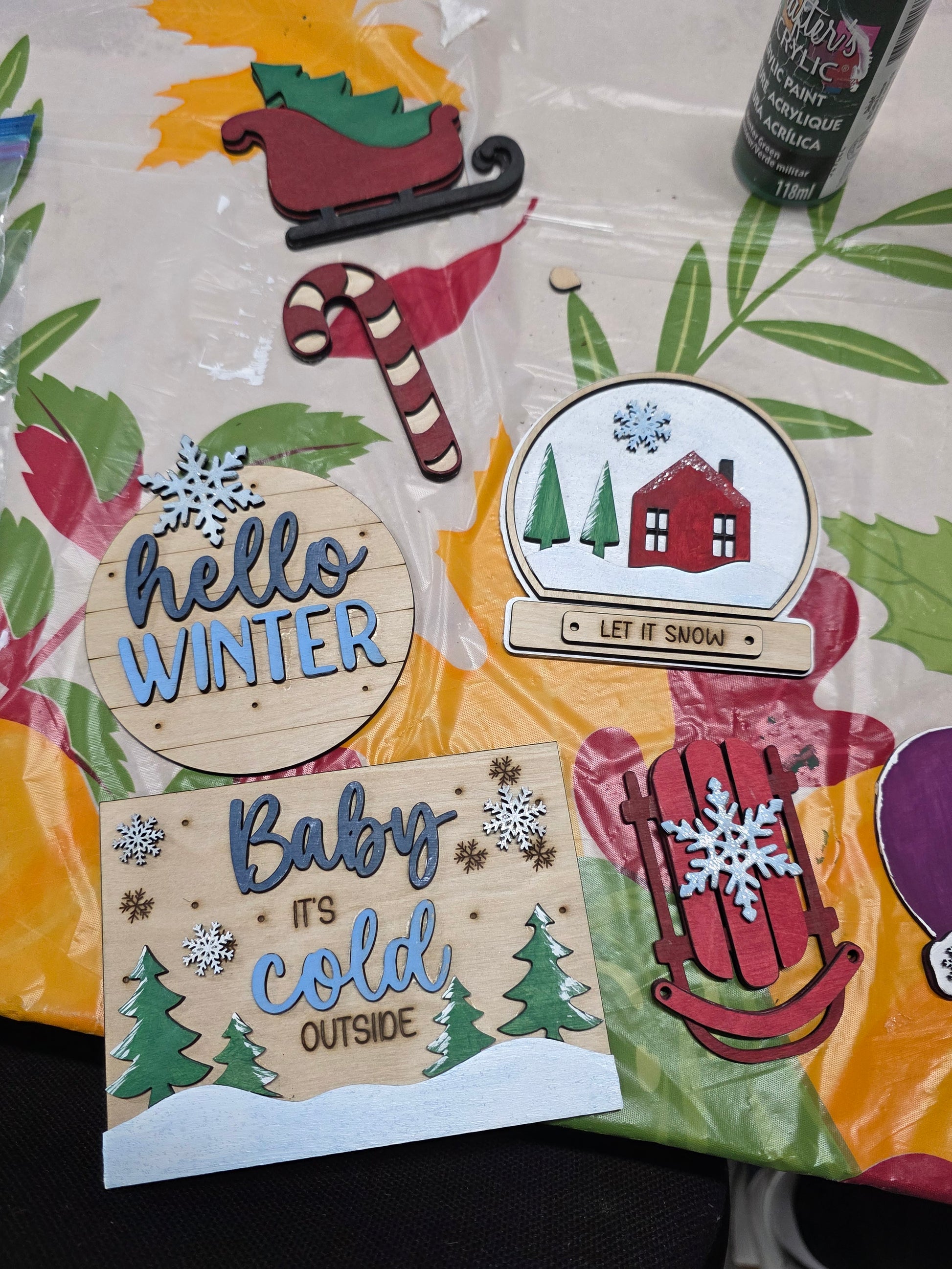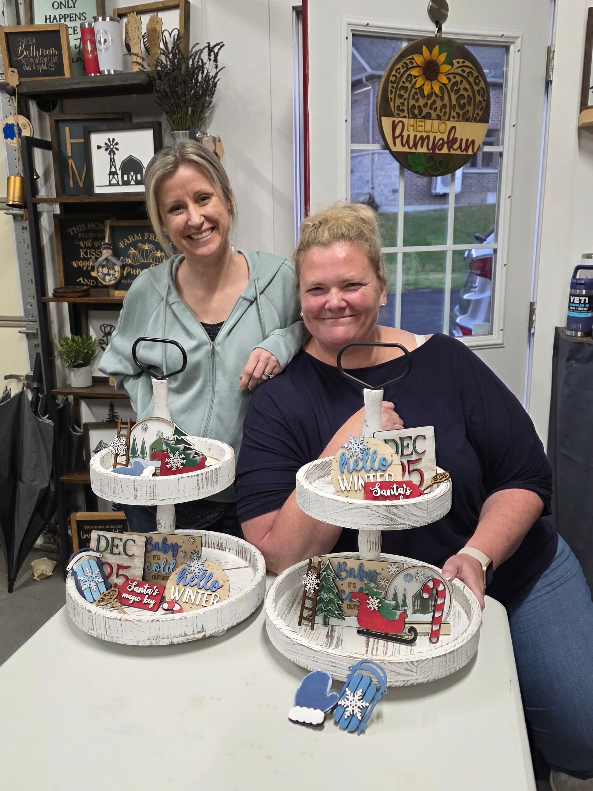 * You will receive one pre-made white wash, 2 tired tray with 2 sets of holiday décor to paint.