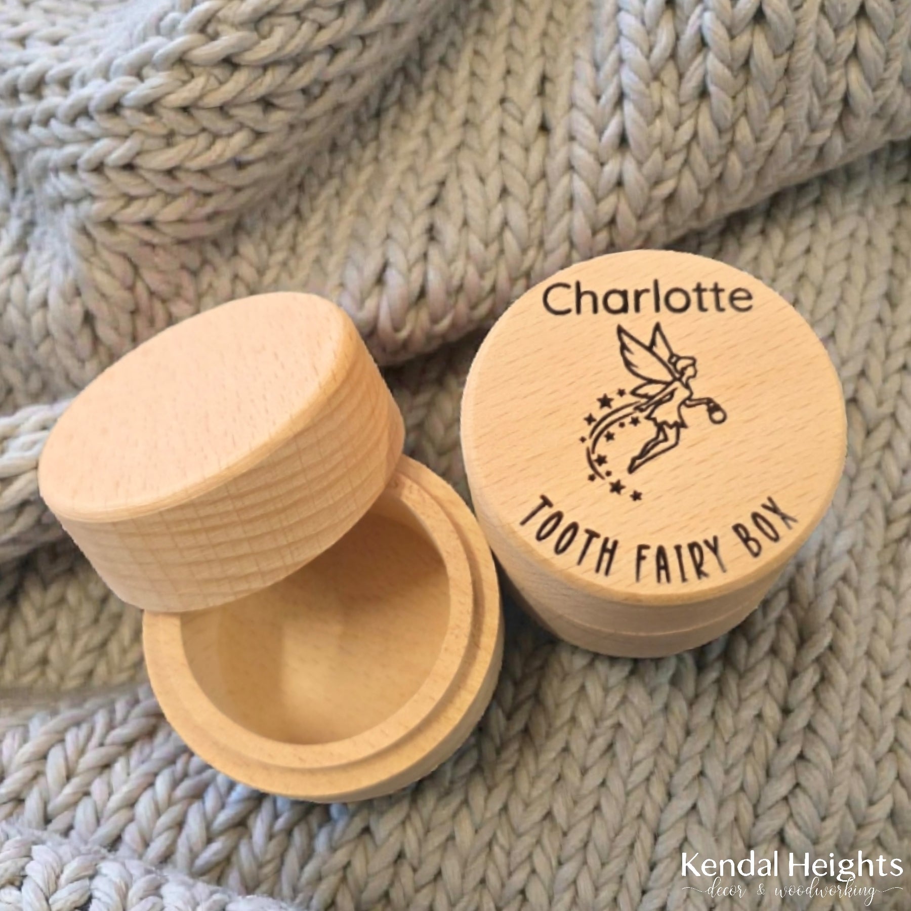 Cute 2" Beachwood box to hold those little teeth safe until the tooth fairy comes. Featuring laser etching on the lid.