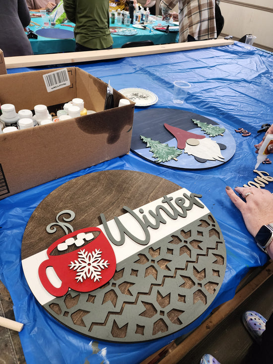 Have a relaxing afternoon after the holiday season to paint a 12" winter sign. Special pricing & limited seating.