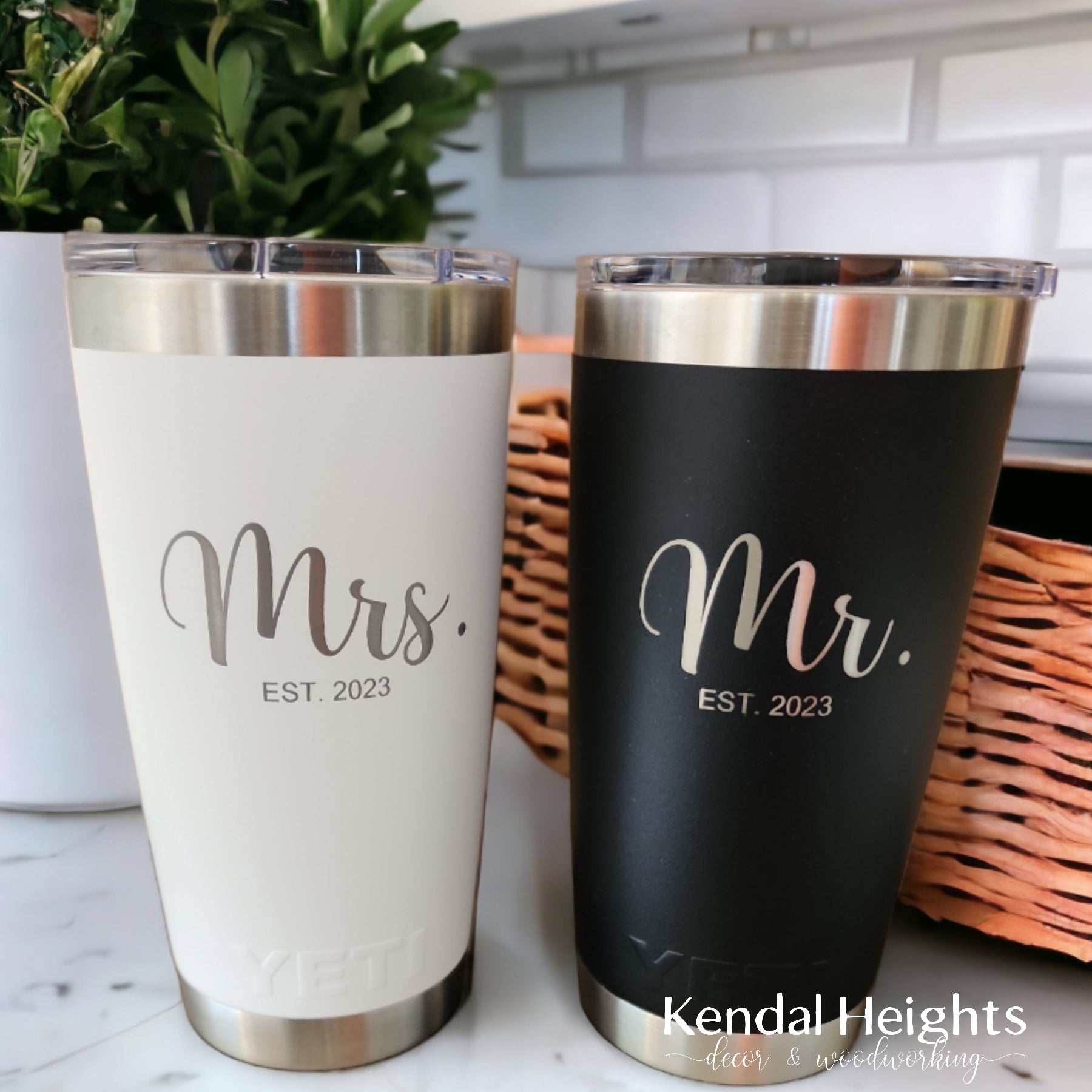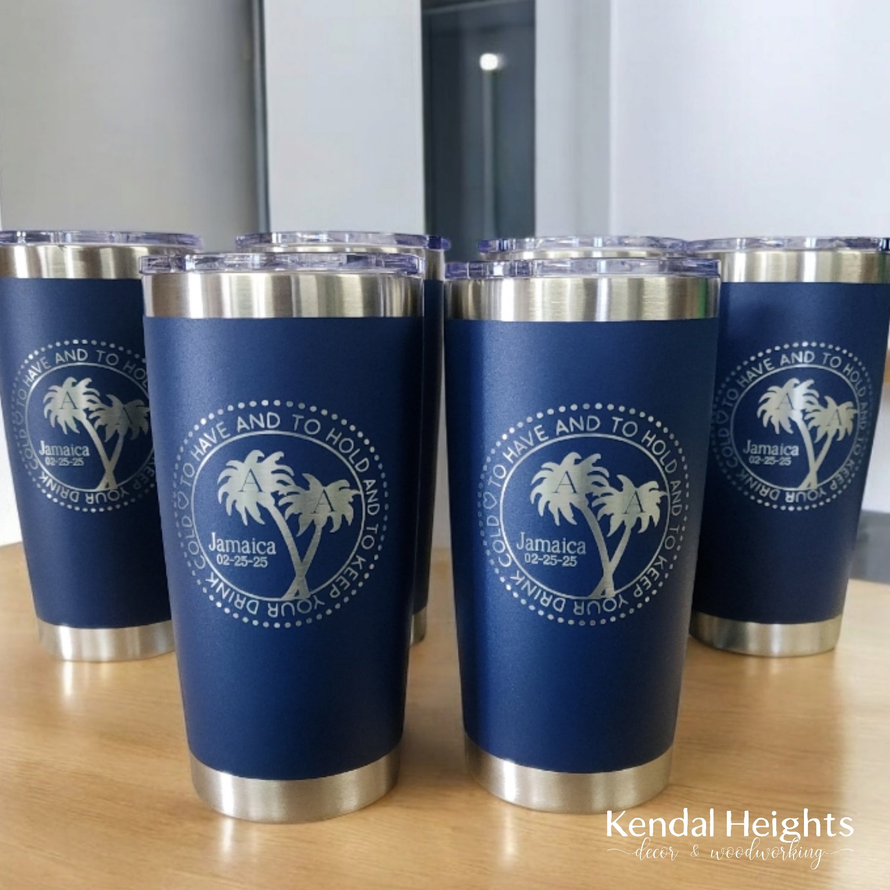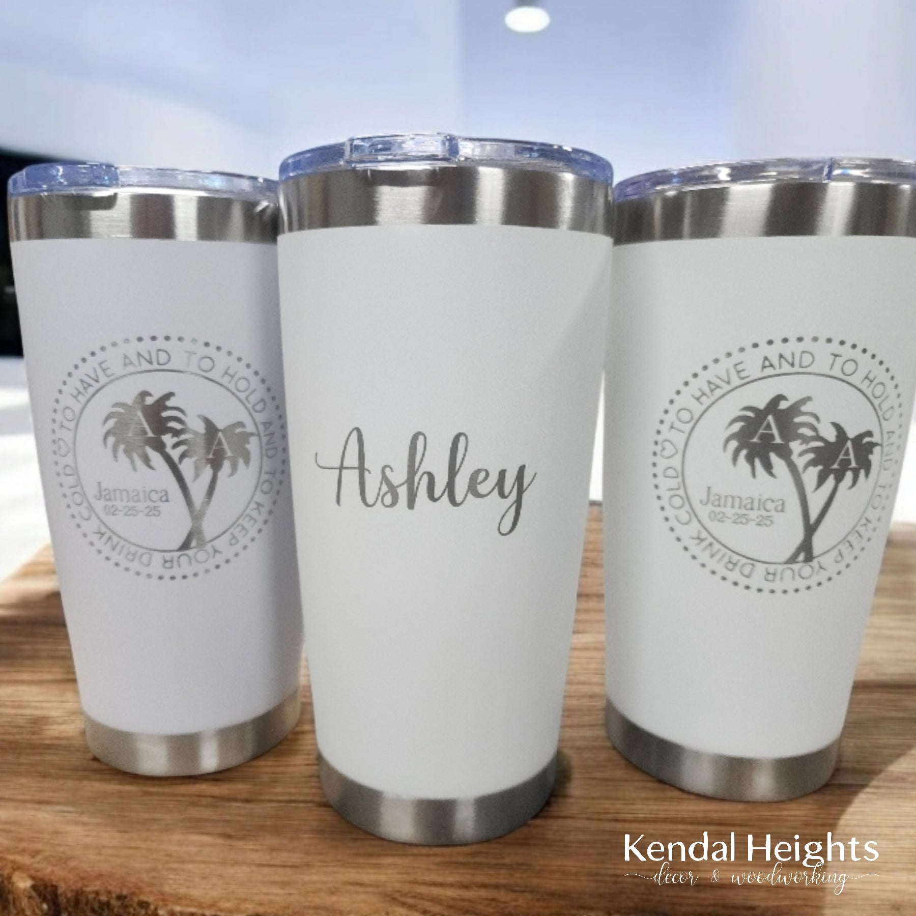 20 oz. Laser etched stainless steel tumbler in black & white.