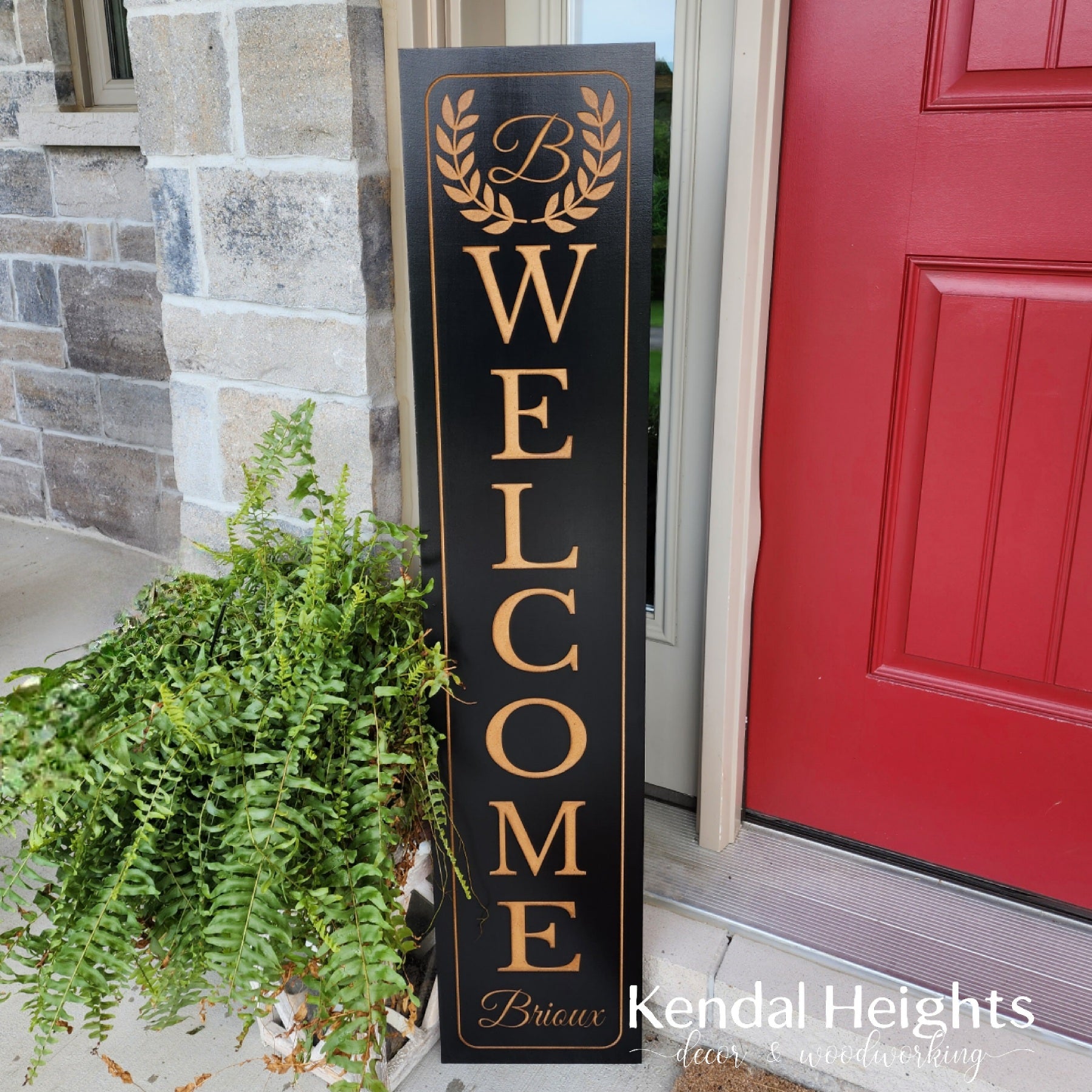 Welcome family and friends every season with Kendal Heights Décor and Woodworking's Custom Engraved Welcome Sign!