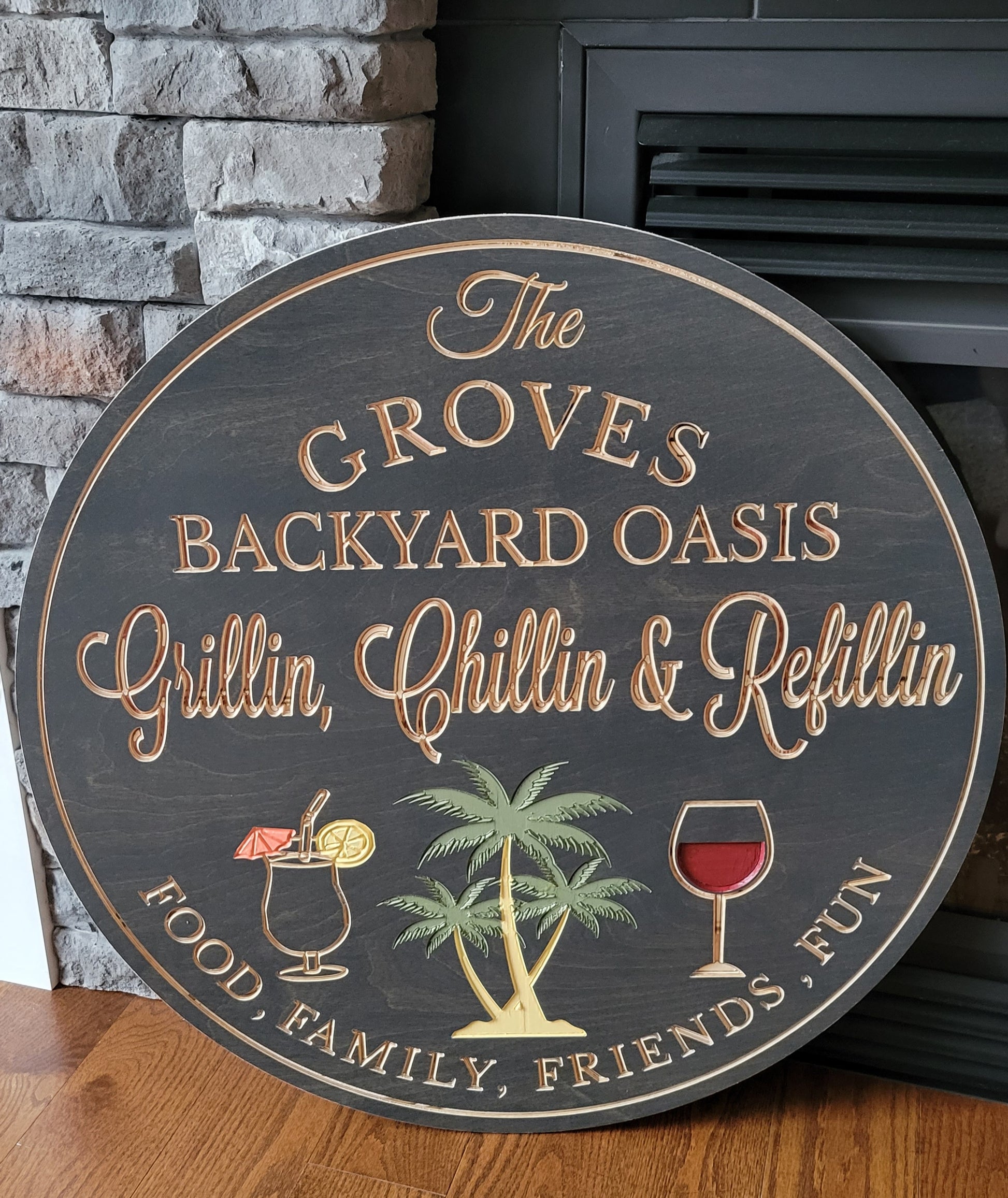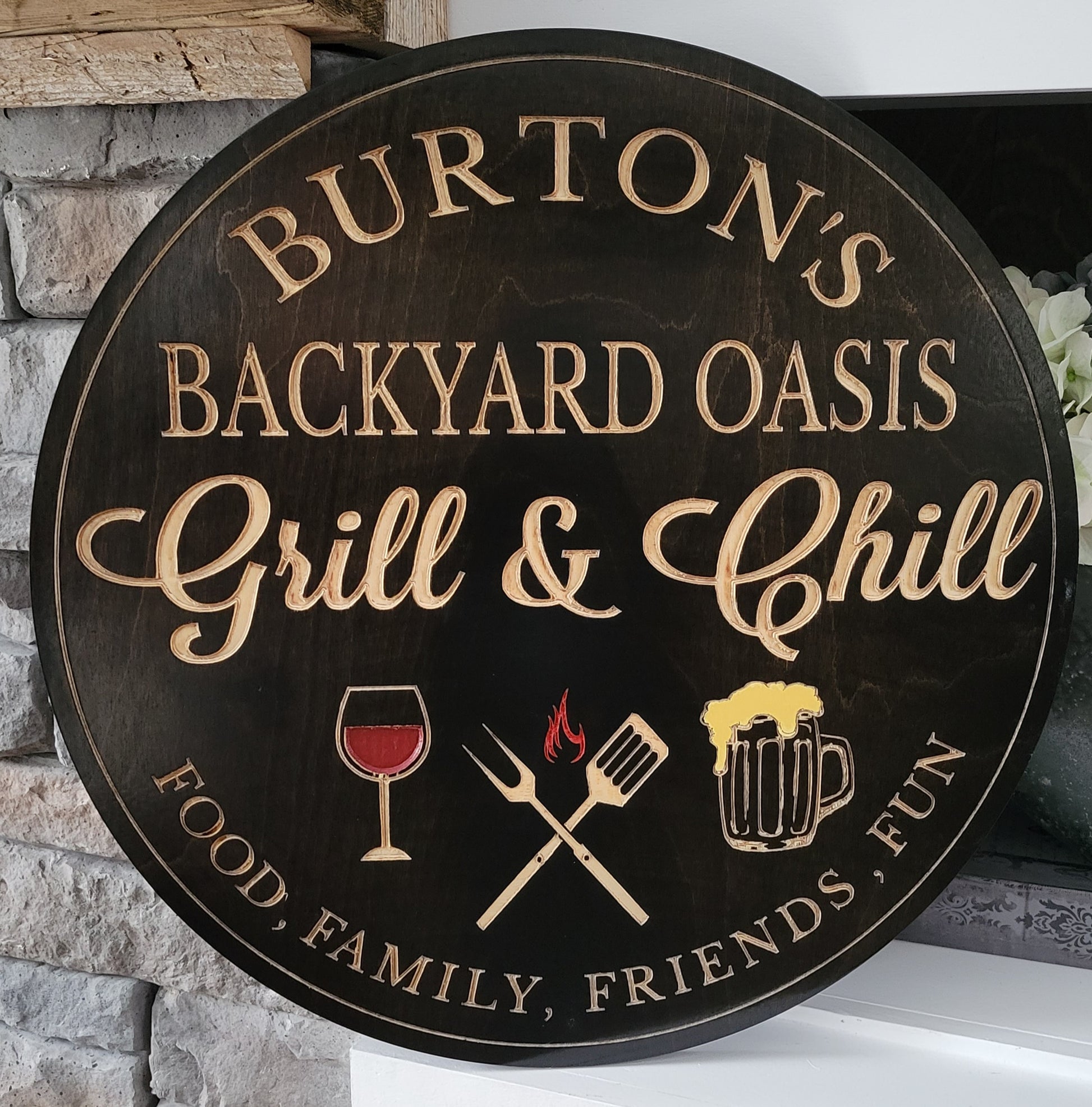 Sit in your backyard oasis with a custom backyard sign from Kendal Heights Décor and Woodworking!
