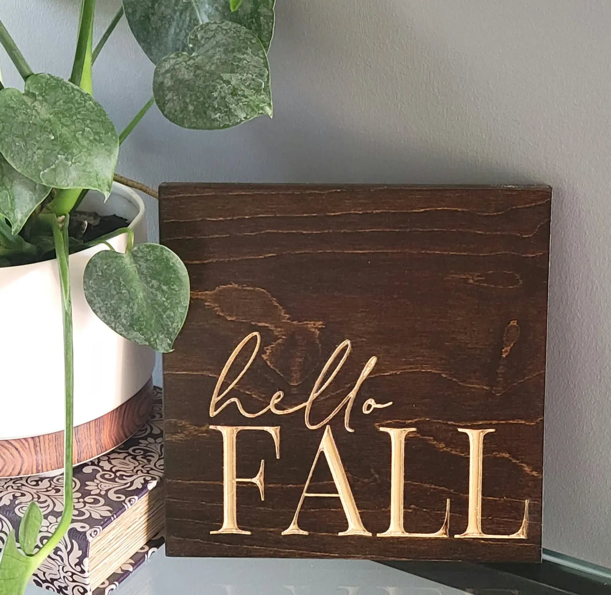 Get cozy with Kendal Heights Decor and Woodworking's Custom Engraved Fall Mini Signs!