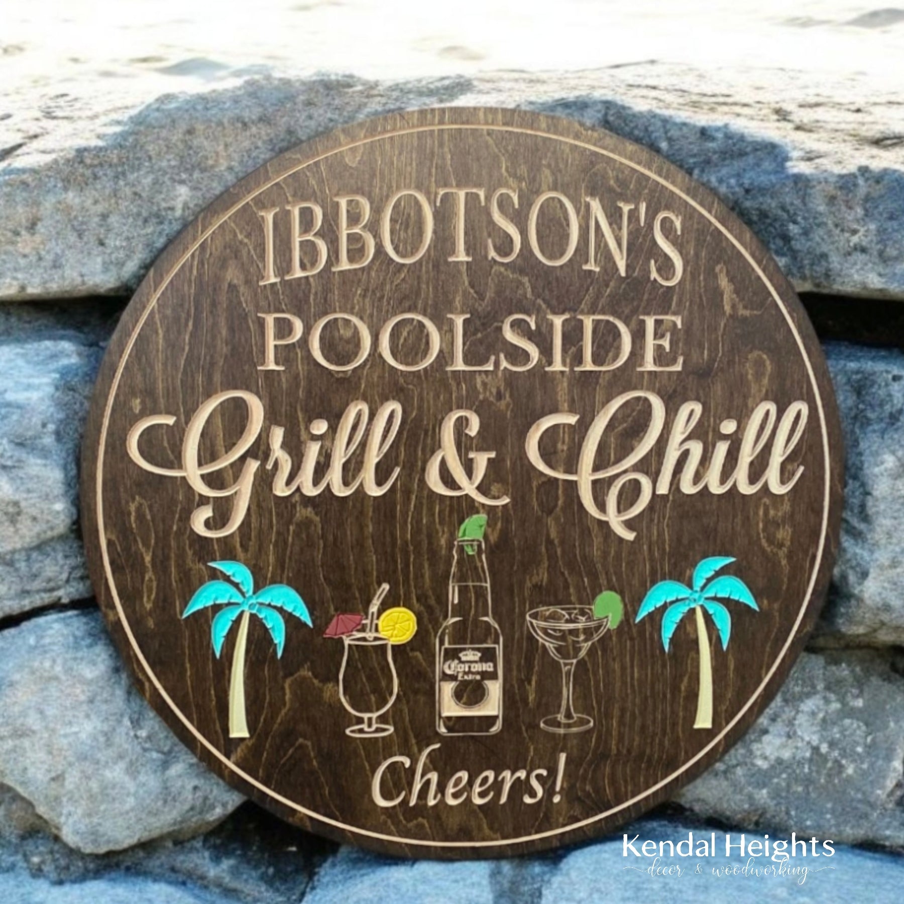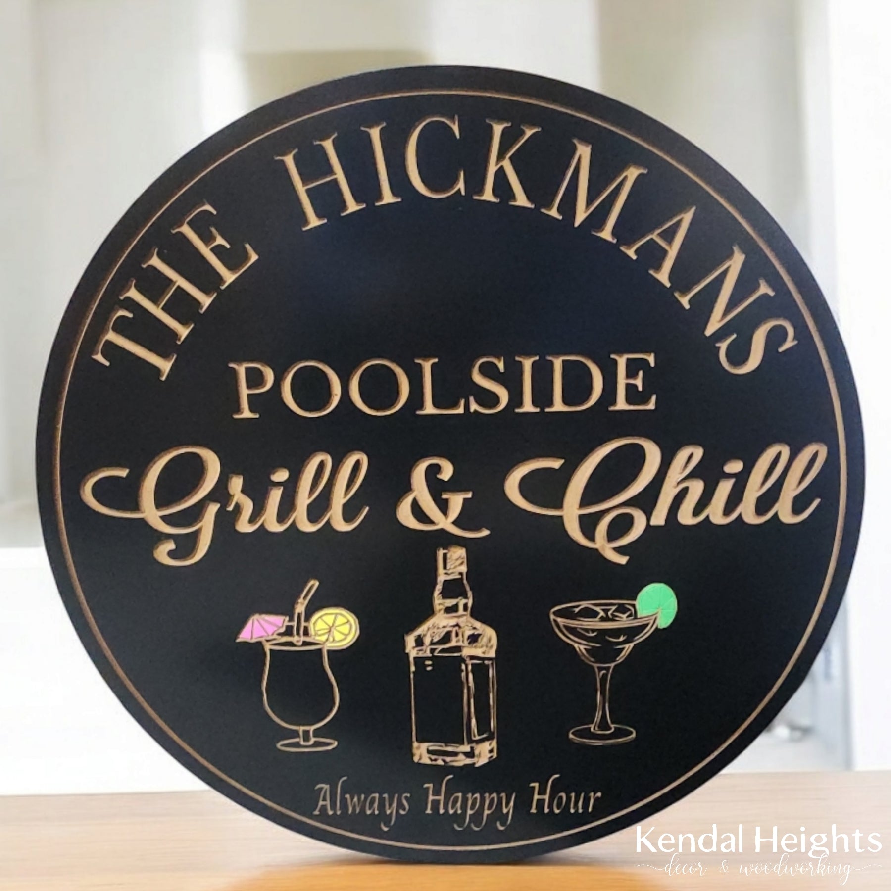 Sit back at the pool with a custom pool sign from Kendal Heights Decor and Woodworking! Just choose your size, what you would like engraved and your stain! You will receive a message from us with a mock-up of your custom design so you can approve prior to engraving.