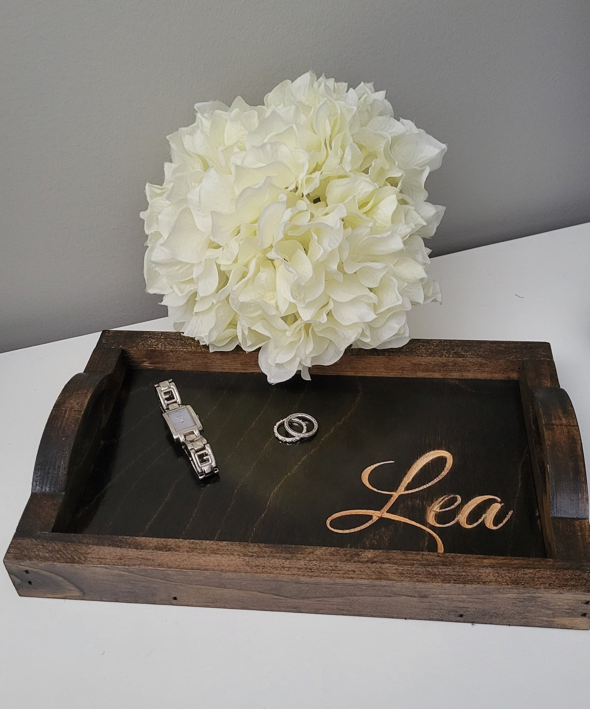 Perfect custom trays in a mini size to have one on your nightstand to hold your jewelry, or the standard serving tray size.