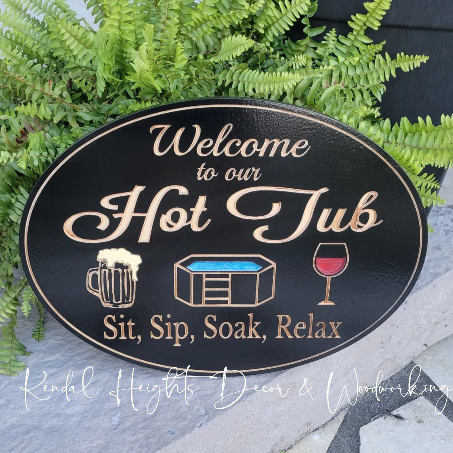 Sit in by your hot tub with a custom backyard sign from Kendal Heights Décor and Woodworking!