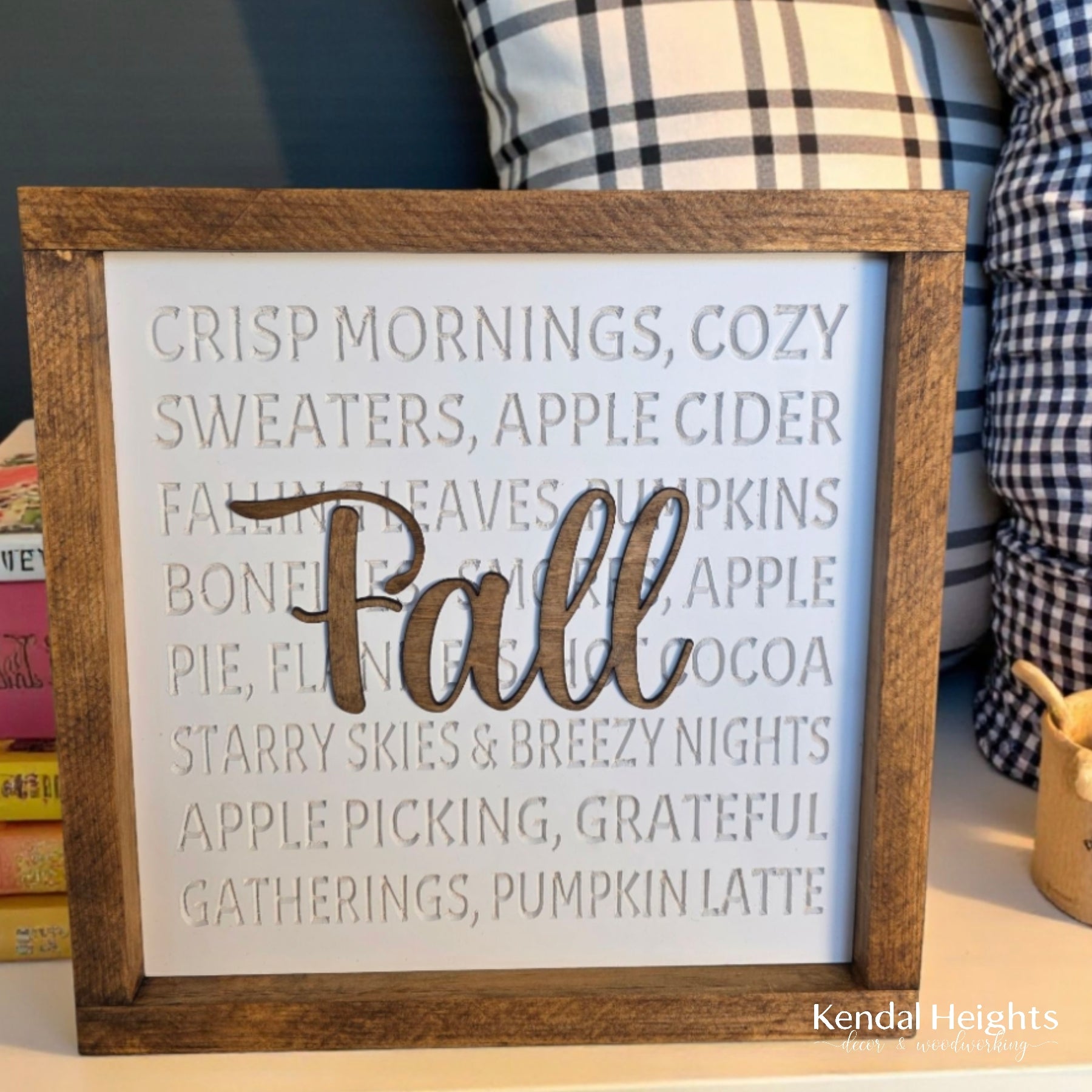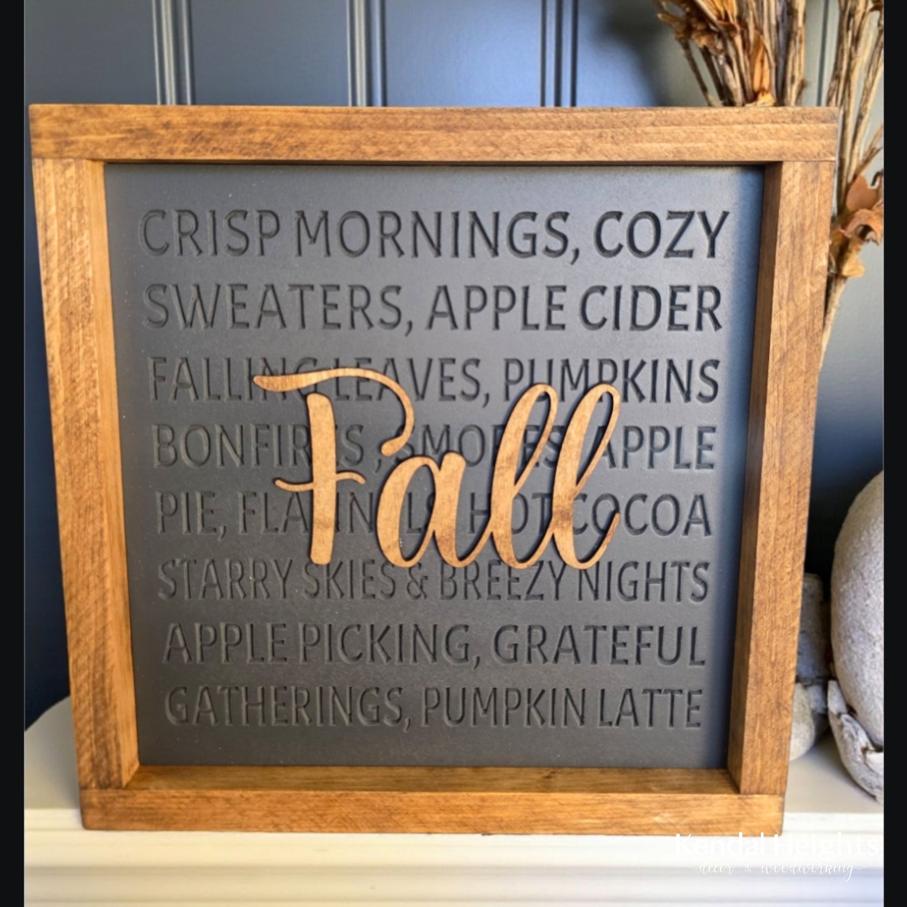 Fall with custom engraving in the backing, with Fall and framed stain in provincial.