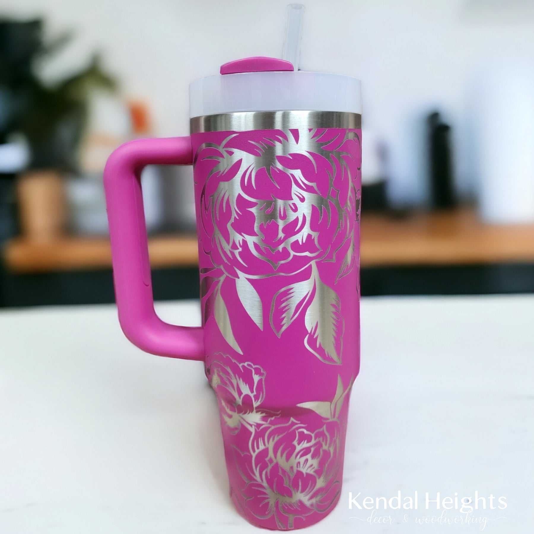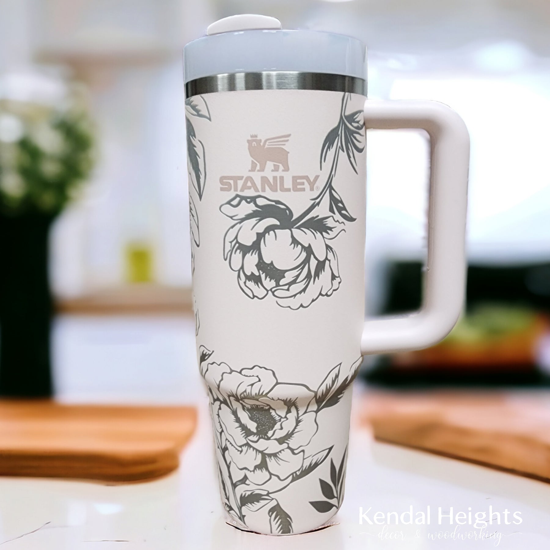 Stanley and generic brand tumblers available in this customize peony flower wrap.