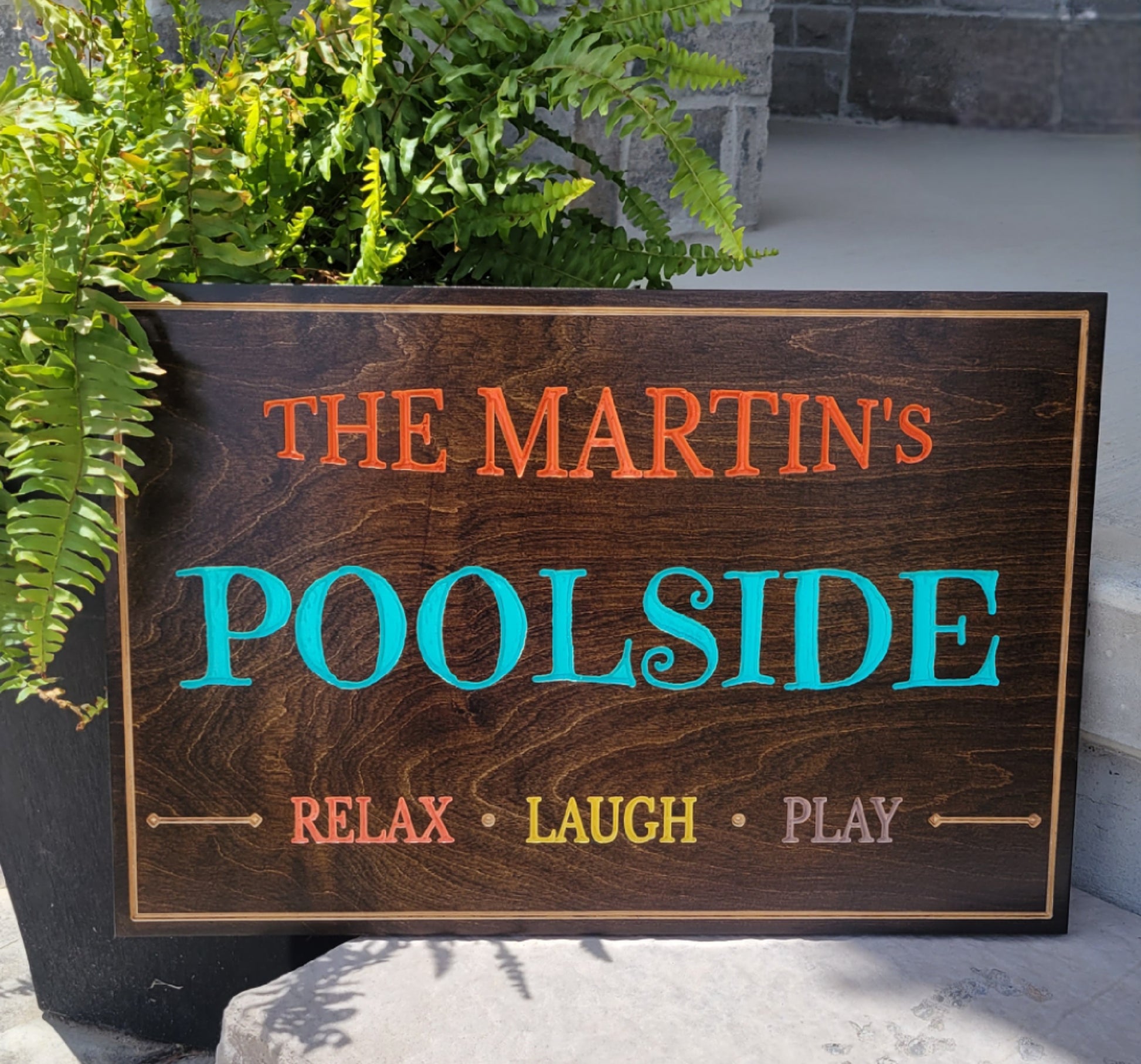 Sit back at the pool with a custom pool sign from Kendal Heights Décor and Woodworking!