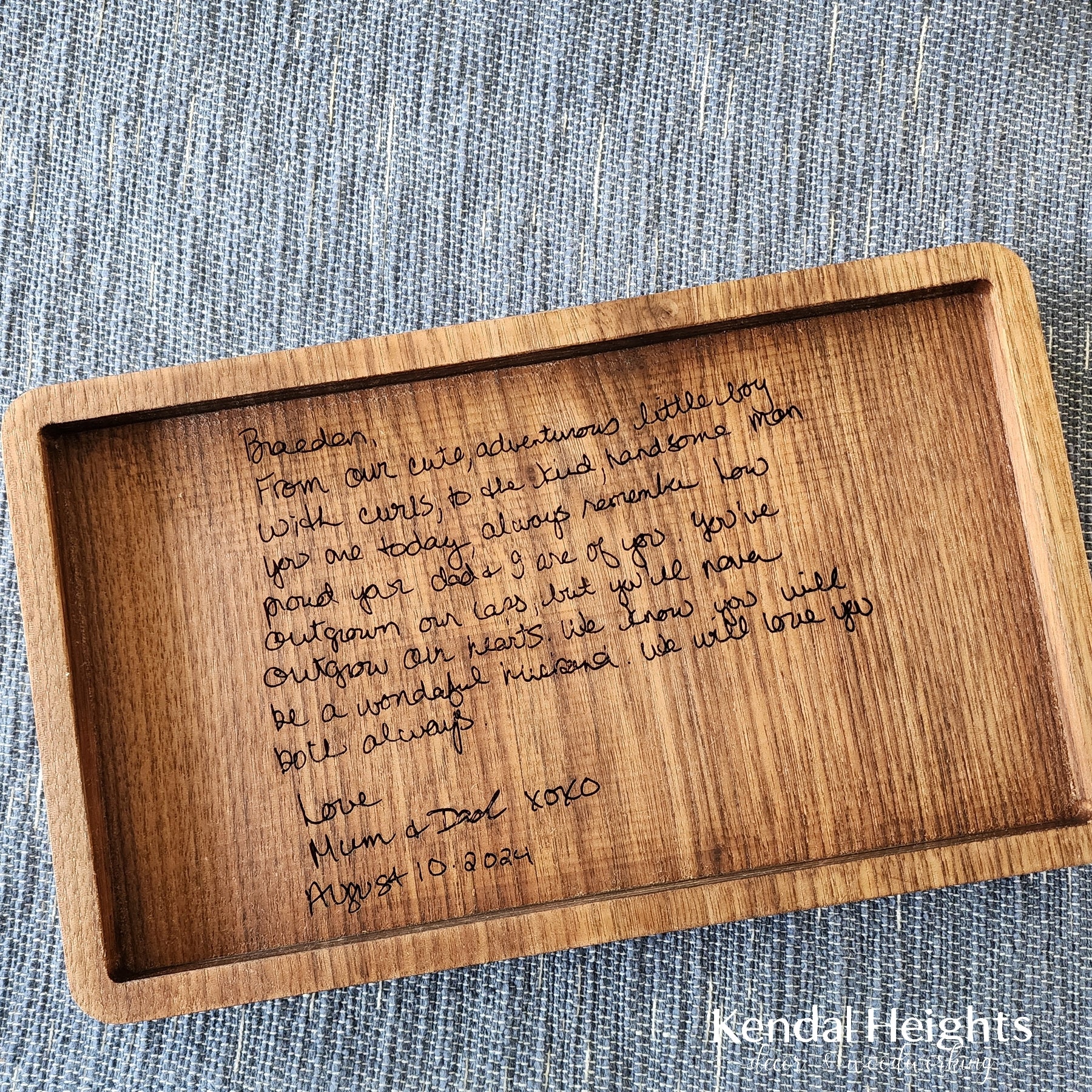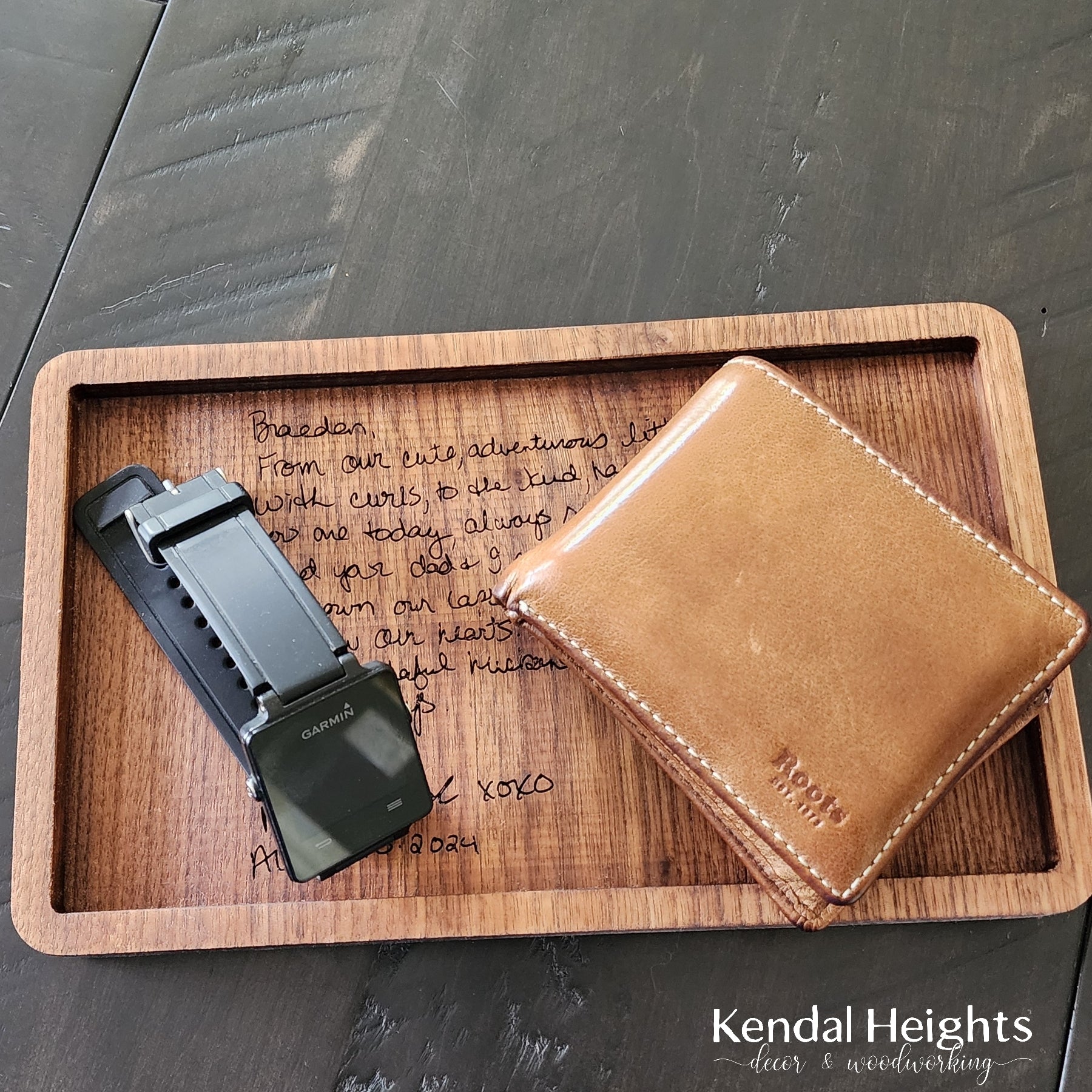 Solid black walnut trays. Perfect to have one on your nightstand to hold your jewelry, or one in the bathroom... actually any room of the house is a perfect spot for a cute tray.