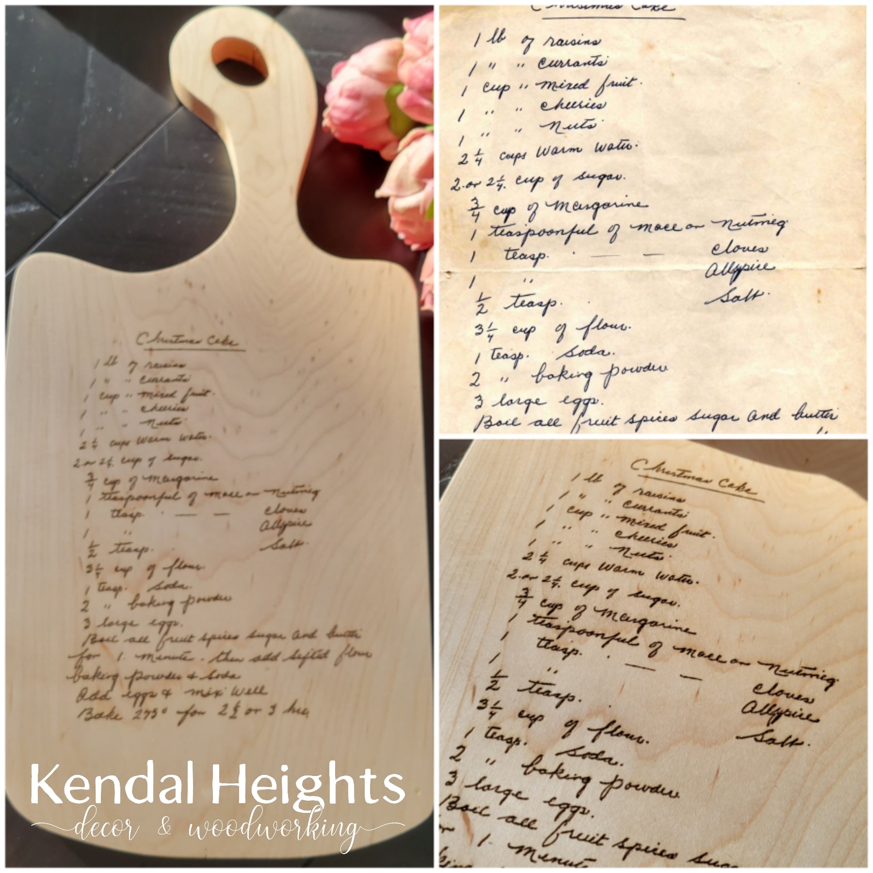 Take grandma's old recipe or an important handwritten note and we can etch it for you or use one of our premade quotes or your own idea laser etched on these beautiful boards.