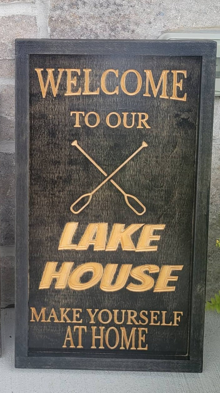 Camping and cottage season is coming. Soon, the warmer days will be upon us, drink in hand and campfires with friends. Welcome to our lake house. Make your sign your own by customizing your stain colour**!