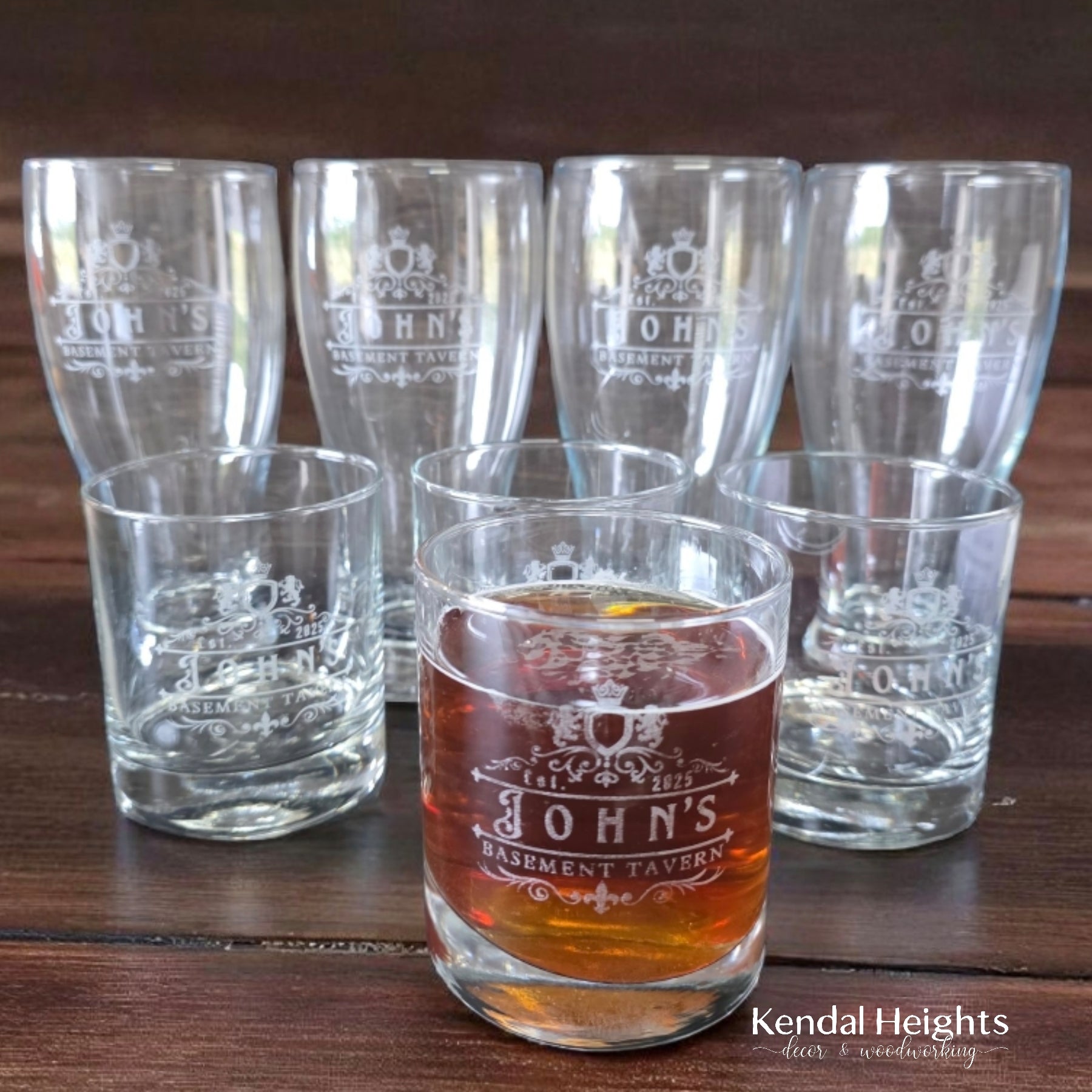 Each glass comes with etching. Add the logo or wording in the personalization box. We will send a computerized mock up design prior to etching.