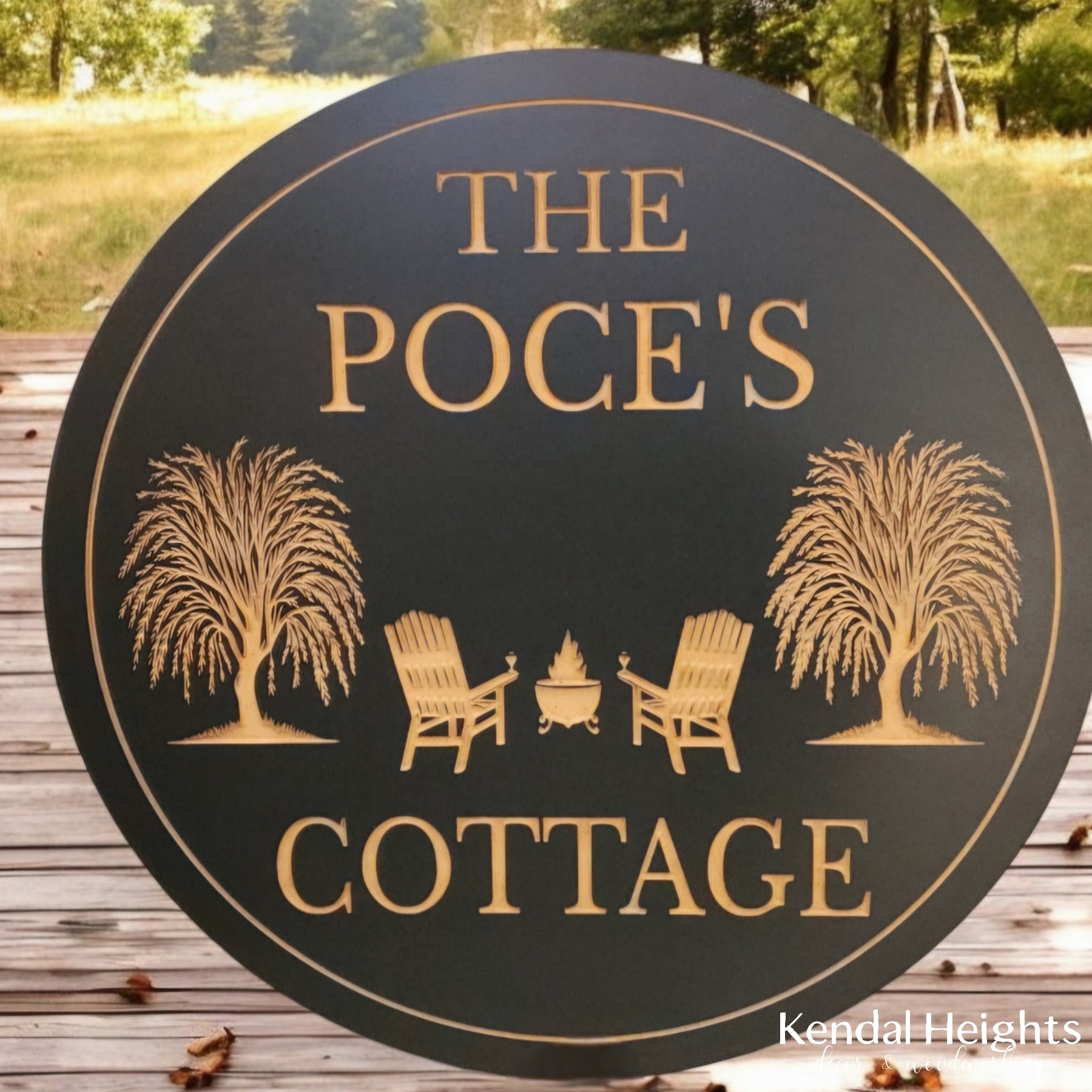 Custom cottage sign with beautiful willow trees engraved.